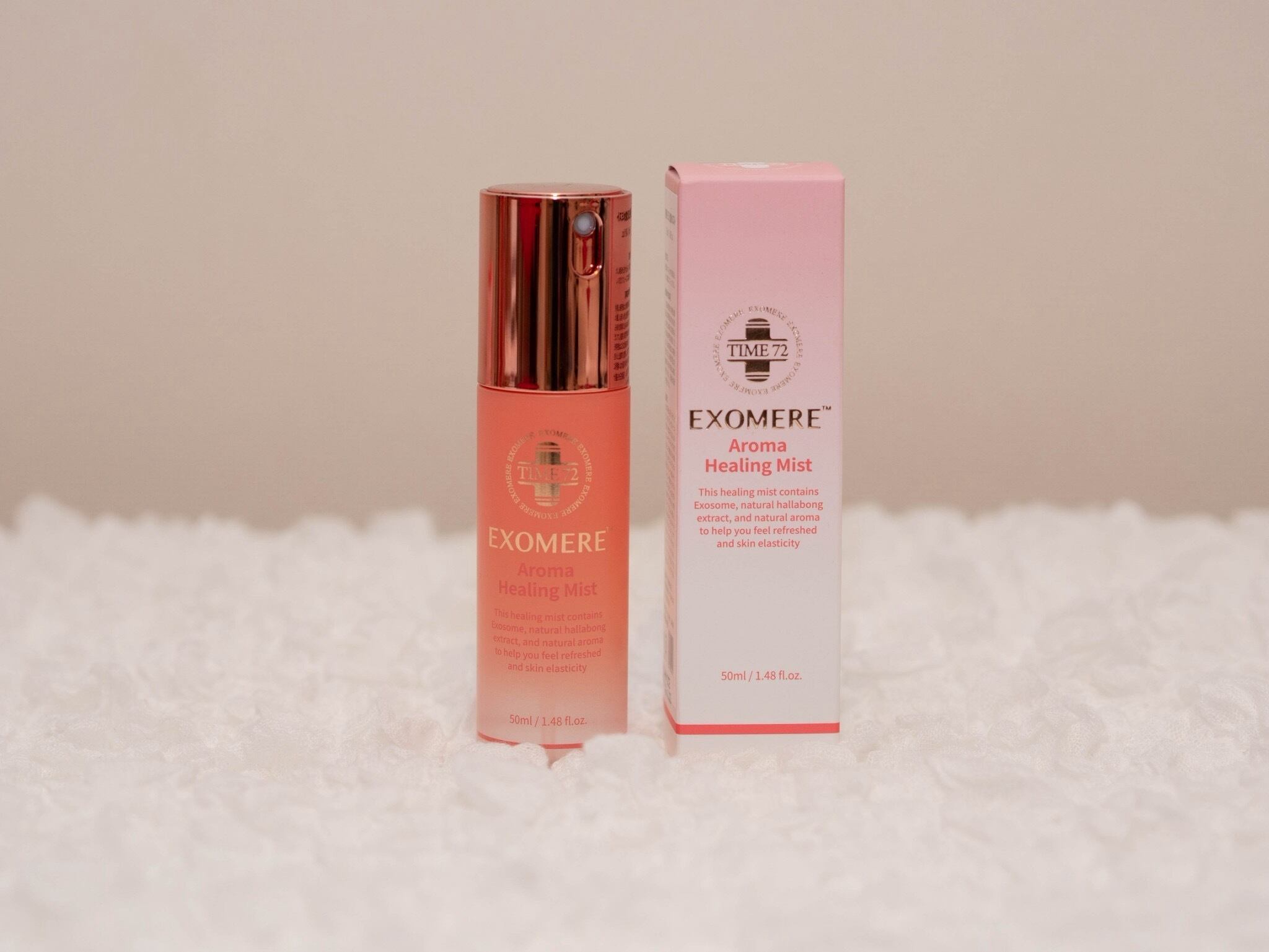 エクソソーム成分、天然ハラボン抽出水、天然アロマ成分が含まれており、爽やかな気分と皮膚の弾力性を助けるヒーリングミスト。無ミネラルオイル、無人工着色料、無ベンゾフェノン、無人工香料、無パラベン、無硫酸塩系界面活性剤。